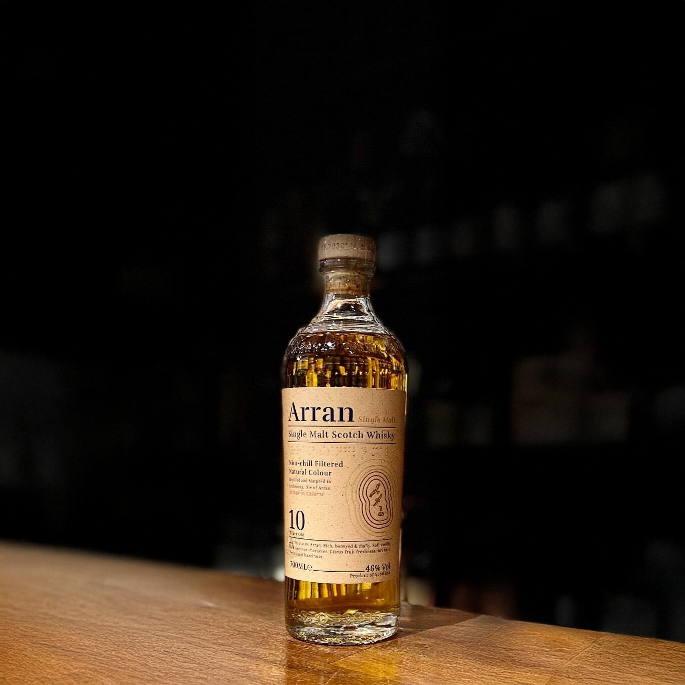 A classic Arran. Rich, honeyed & malthy. Soft vanila and coconut character. Citrus fruit freshness, orchard fruits and hazelnuts.